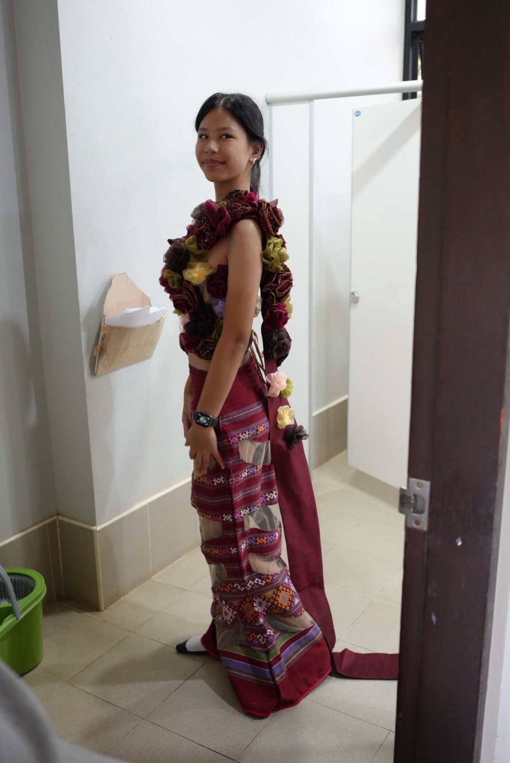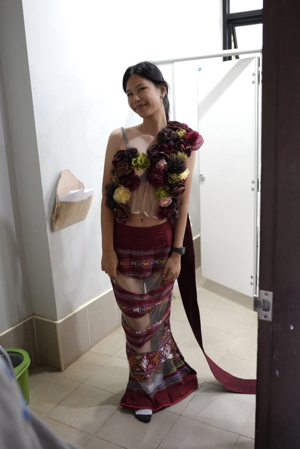 คอนเซปต์ของชุดนี้ได้แรงงบรรดาลใจมาจาก สวนเฮสเพอริเดสซึ่งเป็นสวนที่ถูกกล่าวขานว่าเป็นสวนที่อันตราย ลึกลับ และดึงดูดให้คนอยากจะเข้าป่าไปสำรวจ เเละ ในสวนยังมีแอปเปิ้ลทองคำที่เป็นหัวใจหลักของสวนนี้ และะยังเป็นฉนวนที่ก่อให้เกิดสงครามกรุงทรอยอีกด้วย เกล่าเหล่าจึงเนรมิตให้ตัวกระมีความโค้ง การตัดผ้าจะเป็นแบบโค้งให้รู้สึกว่าย้วย สื่อถึงการแต่งกายของคนในยุคกรีกโบราณ สมัยประมาณ500ปีก่อนคริสตการ และเราก็นำการเเต่งกายความเป็นไทยมาผสมผสานโดยการนำสไบที่ตกแต่งด้วยดอกไม้ทำมือให้ออกมาคล้ายสวนเฮสเพอริเดส ตามภาพวาด โดยตัวกระโปรง จะใช้ผ้าทอไทลื้อลายนํ้าไหล ทอโดยวิธีเกาะล้วง จากชุมชนเครือข่ายคุณธรรม บ้านลานทอง ตัวดอกไม้จะมีผ้าแก้ว และผ้าฝ้ายพิมพ์ลายจากขอนแก่นสลับกัน ตัวพื้นสไบเป็นผ้าไหมเทียมสีแดงเลือดหมูจากจังหวัดขอนแก่น และอย่างสุดท้ายคือช่วงตัวเป็นผ้ามุ้งสีเหนือตัดต่อเป็นคอร์เซ็ต เรานำทรัพยากรที่เรามีทุกอย่างมารวมกันจนออกมาเป็นชุดนี้ Garden of dreams