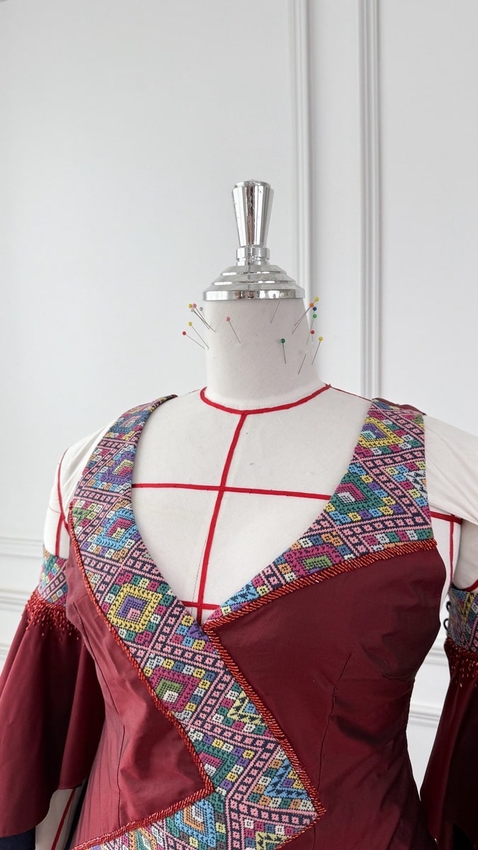 ความตั้งใจที่อยากสนันสนุนช่างทอผ้าไทย ในภาคเหนือ จึงเลือกใช้ผ้าที่ทอมือ จาก จ.เชียงใหม่ และ จ.เชียงราย เพราะต้องการสื่อถึงความสง่างาม ในแบบฉบับล้านนาผสมผสานกับการออกแบบ ให้เรียบหรู เพื่อให้เข้ากับสากลโดยไม่ใช้ลวดลายที่เยอะเกินไป แต่เน้นไปที่การให้คุณค่าของงานฝีมือ ทั้งงานทอ งานปัก และลวดลายโบราณ รวมถึงการนำลายพระราชทานมาประยุกต์ใช้ด้วยค่ะ