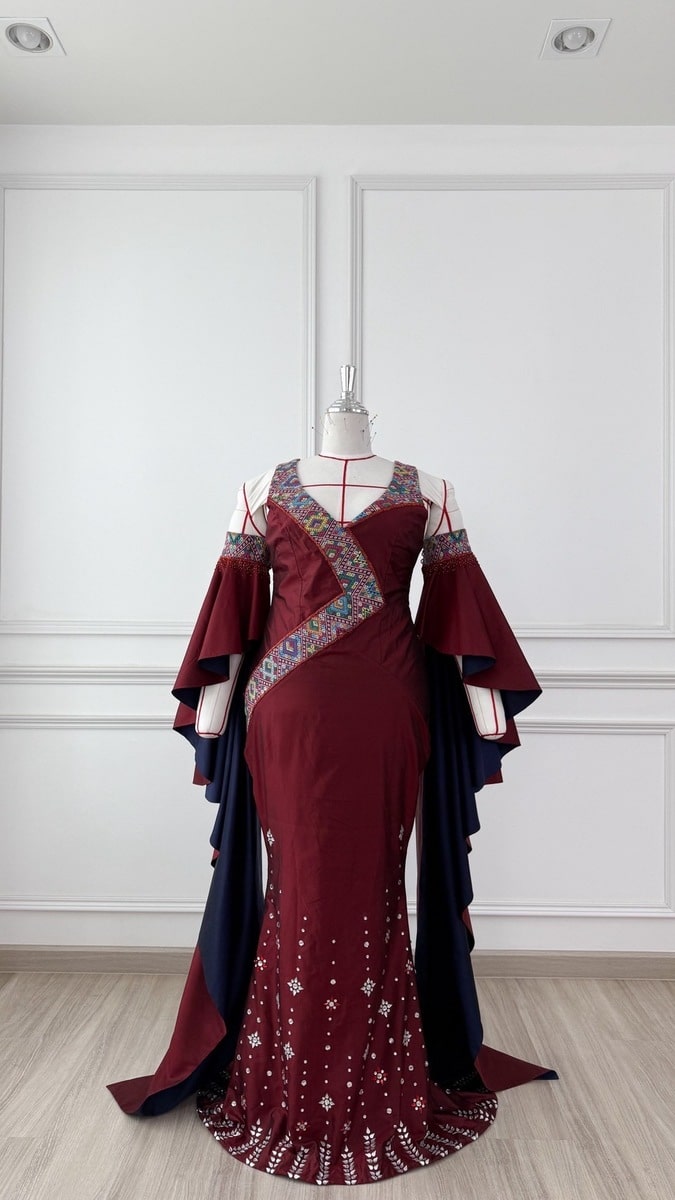 ช่วงแขน เสริมให้ผู้สวมใส่มีความสง่างามเมื่อเคลื่อนไหว และยังสามารถถอดแยกออกจากกันได้ โดยที่ตัวเดรสหลัก ก็จะยังคงมีความสง่างาม อยู่เหมือนเดิม