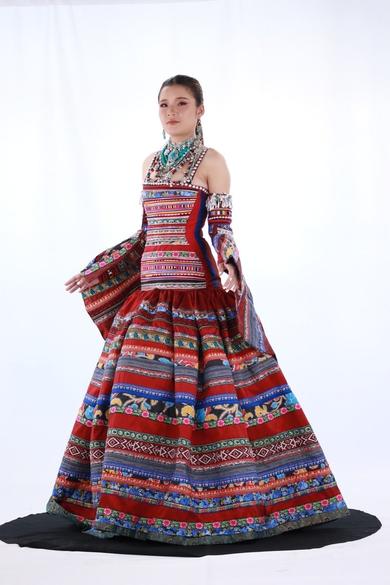 อียิปต์ อารยธรรมความงามนับ 1000 ปีผู้ออกแบบได้มีแรงบันดาลใจนำกลิ่นอายของความเป็นชนเผ่ามาผสมผสานกับอารยธรรมอียิปต์จนออกมาเป็นชุดนี้ที่รวมเอาผ้าชนเผ่าชาติพันธุ์เชียงราย และผ้าบาติก ทั้ง 3 ชนิด คือ ผ้าปักลีซ้อ ผ้าซิ่นไตหย่า ผ้าบาติกลายดอกไม้ มาผสมเข้าด้วยกันจนออกมาเป็นชุดราตรีที่ผสมผสานความงดงามของ ผ้าทั้ง 3 ชนิด รวมเข้ากับกลิ่นอายวัฒนธรรมของ อียิปต์ เพื่อแสดงให้เห็นถึงความ รุ่งเรืองทางวัฒนธรรมของผ้าชนเผ่าชาติพันธุ์เชียงรายผ้าบาติกที่ได้มีการผสมผสานกันลงตัว และยกระดับผ้าชาติติพันธ์เชียงรายสู่ระดับสากลมากขึ้น